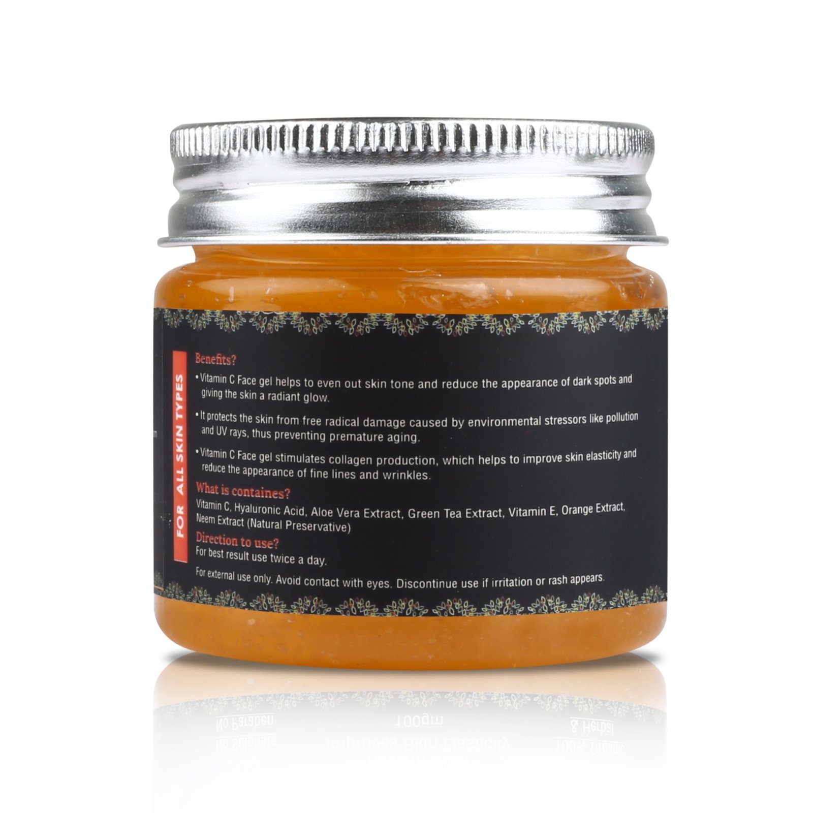 A 100% organic Vitamin-C infused face gel enriched with Hyaluronic Acid and natural extracts to brighten, hydrate, and protect your skin while improving elasticity and glow.
